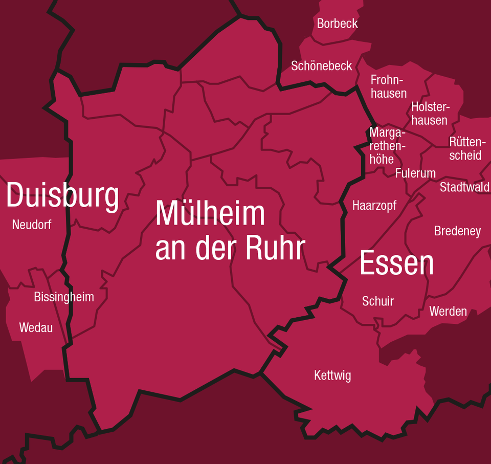 Das Beratungsgebiet, in dem wir aktiv sind, umfasst neben Mülheim an der Ruhr auch mehrere Stadtteile unserer Nachbarn Essen und Duisburg. Sollte Ihr Wohnsitz dort gerade nicht mehr zugehören, melden Sie sich ruhig trotzdem bei uns und wir klären individuell, ob eine Beratung durch uns möglich ist.